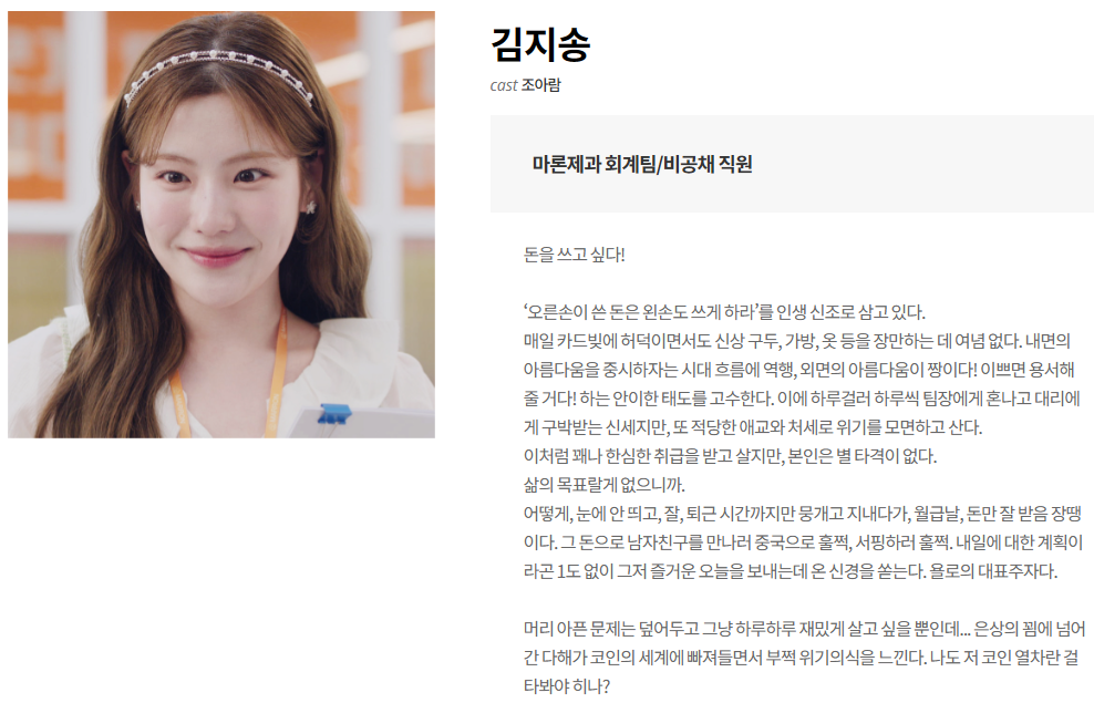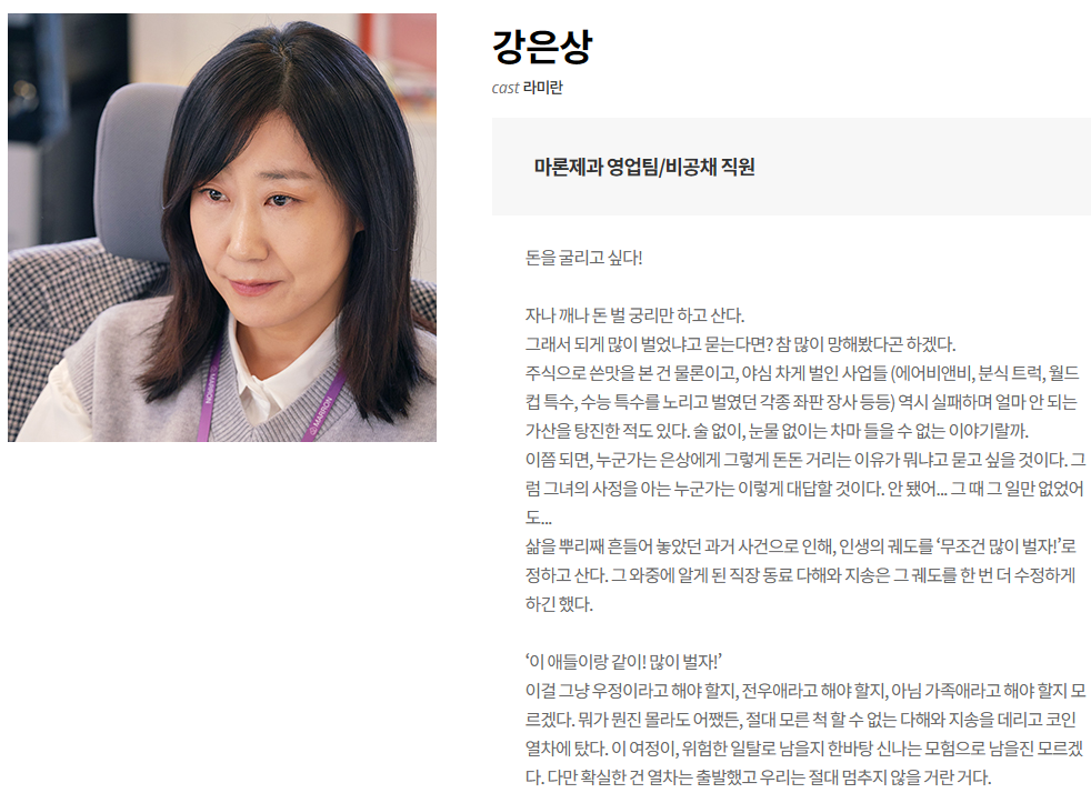 ✨ 강은상: 삶에 지쳐있지만 돈에 대한 집착과 인간적 매력 대폭발