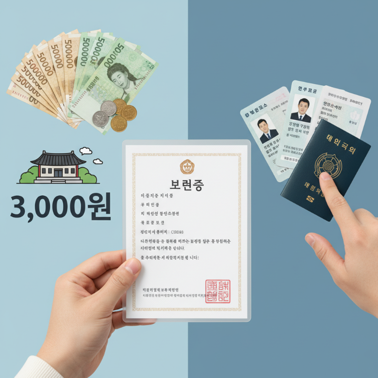다른 것은 다 잊어도 ⭐ 신분증 (주민등록증, 운전면허증, 여권 등) ⭐은 절대 잊으면 안 됩니다. 본인 확인이 안 되면 모든 절차가 중단됩니다. 별도의 사진이나 다른 서류는 필요 없으니, 지갑 속 신분증만 다시 한번 확인하세요!