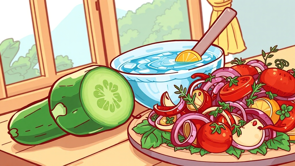 얇게 썬 노각에 식초, 설탕, 얼음을 넣고 살짝 섞어주면 시원하고 상큼한 냉국이 완성됩니다. 더위를 싹 잊게 해주는 맛입니다.