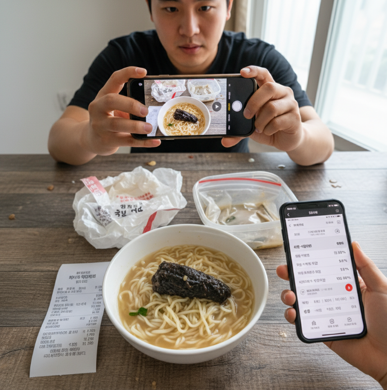 가장 중요한 첫 단추는 바로 '증거'입니다. 휴대폰을 들어 이물질이 나온 음식, 이물질의 크기와 형태를 명확하게 알 수 있도록 여러 각도에서 사진과 동영상을 촬영하세요. 포장지, 영수증, 또는 배달앱 주문내역 화면 캡처는 보상 요구의 기본 중의 기본입니다.