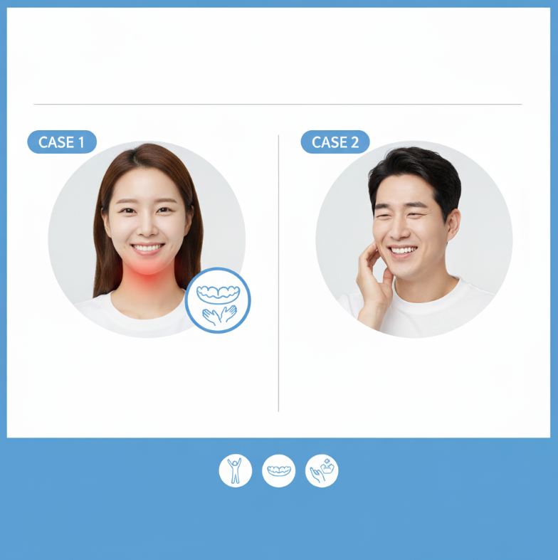 CASE 1: 안면 비대칭과 이갈이가 심했던 30대 여성, 맞춤 교합장치와 도수치료 병행 후 2개월 만에 통증 80% 완화!