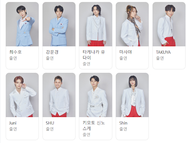 일본 국가대표팀으로는 일본 트롯계의 차세대 리더 마사야(Masaya), 폭발적 가창력의 소유자 타쿠야(TAKUYA), 섬세한 감성의 달인 쥬니(Juni), 파워풀한 무대 장악력의 슈(SHU), 베테랑의 깊이를 자랑하는 키모토 신노스케(Kimoto Shinosuke), 그리고 신예 대형 루키 신(Shin)이 무대에 올라 한일가왕전의 국제적 위상과 품격을 한 차원 높게 끌어올릴 것입니다.