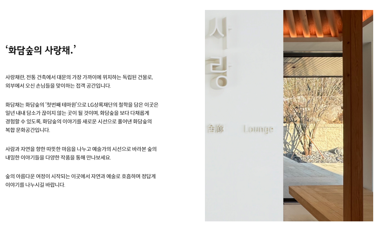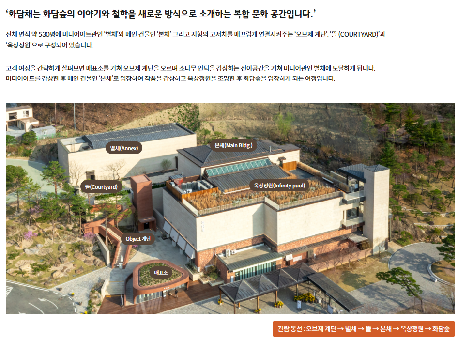 화담채는 전통적인 건축미와 현대적인 문화 체험이 조화롭게 어우러진 복합문화공간이에요. 화담숲 입구에 자리 잡고 있어서, 숲 관람 전후로 들르기 딱 좋답니다. 화담숲 예약하기 시 화담채 입장권도 함께 고려해보세요.