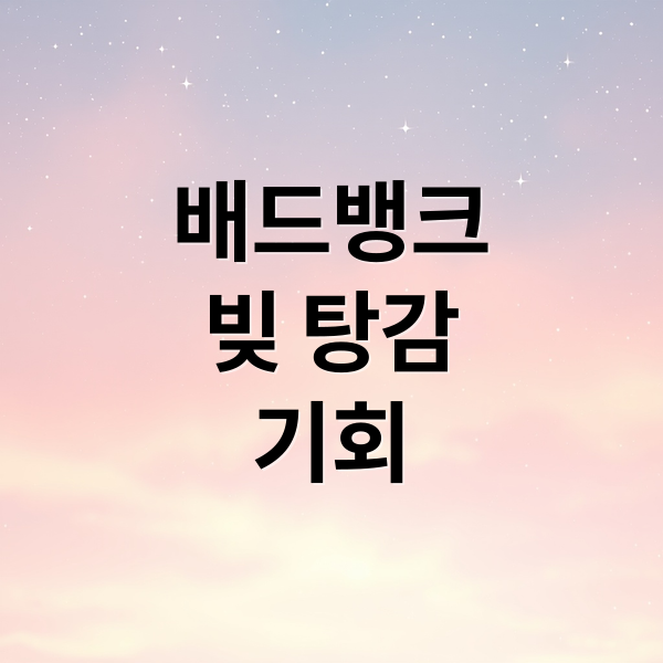 배드뱅크는 정부 주도로 운영되며 한국자산관리공사(캠코)가 주관 기관입니다. 2025년 하반기 시행 예정이며, 대상자에게는 매우 간편한 방식으로 진행될 예정입니다.