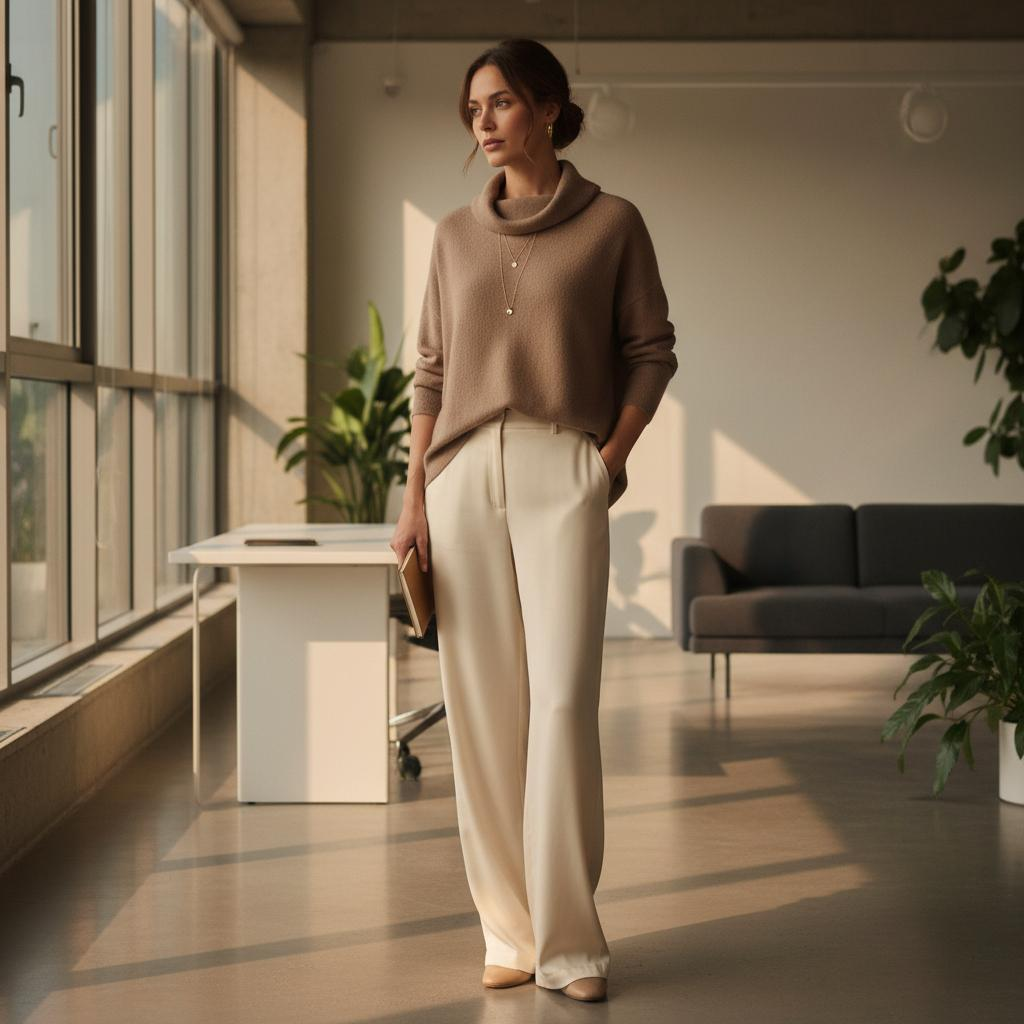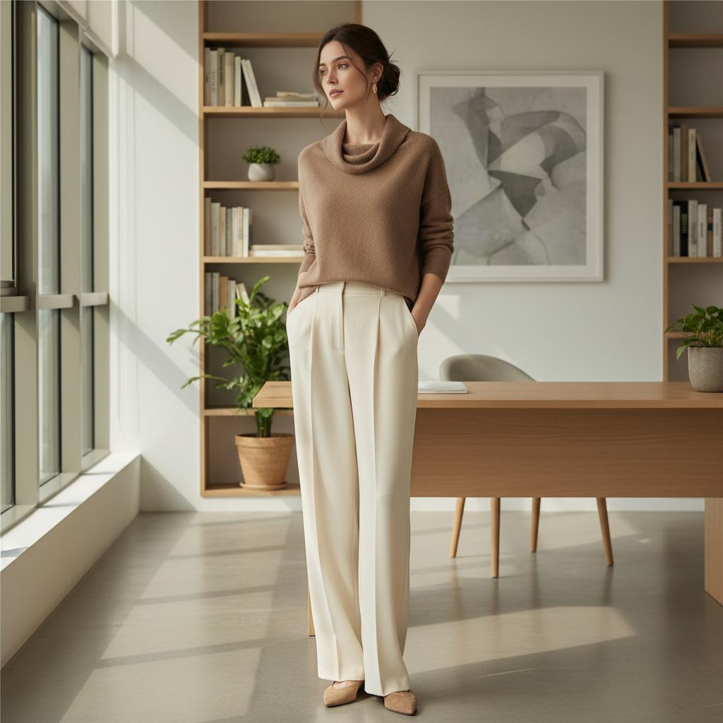 - 모카무스 캐시미어 니트 + 크림색 와이드 팬츠 = 꾸안꾸 부내나는 오피스룩