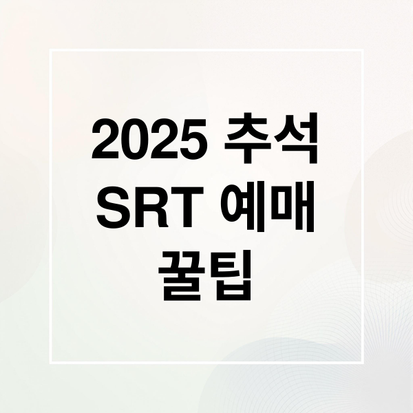 2025년 추석 황금연휴, SRT 예매 전쟁에서 승리하고 싶나요? 예매 일정부터 성공 확률 200% 높이는 숨은 꿀팁까지, 지금 바로 확인하고 편안한 귀성길을 준비하세요!