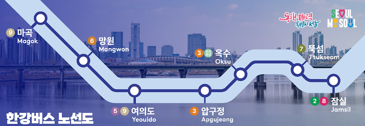 - 총 28.9km 구간 - 마곡에서 잠실까지 7개 선착장 운항
