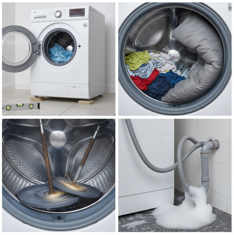 QLG 세탁기 탈수 시 소음의 가장 흔한 원인은?